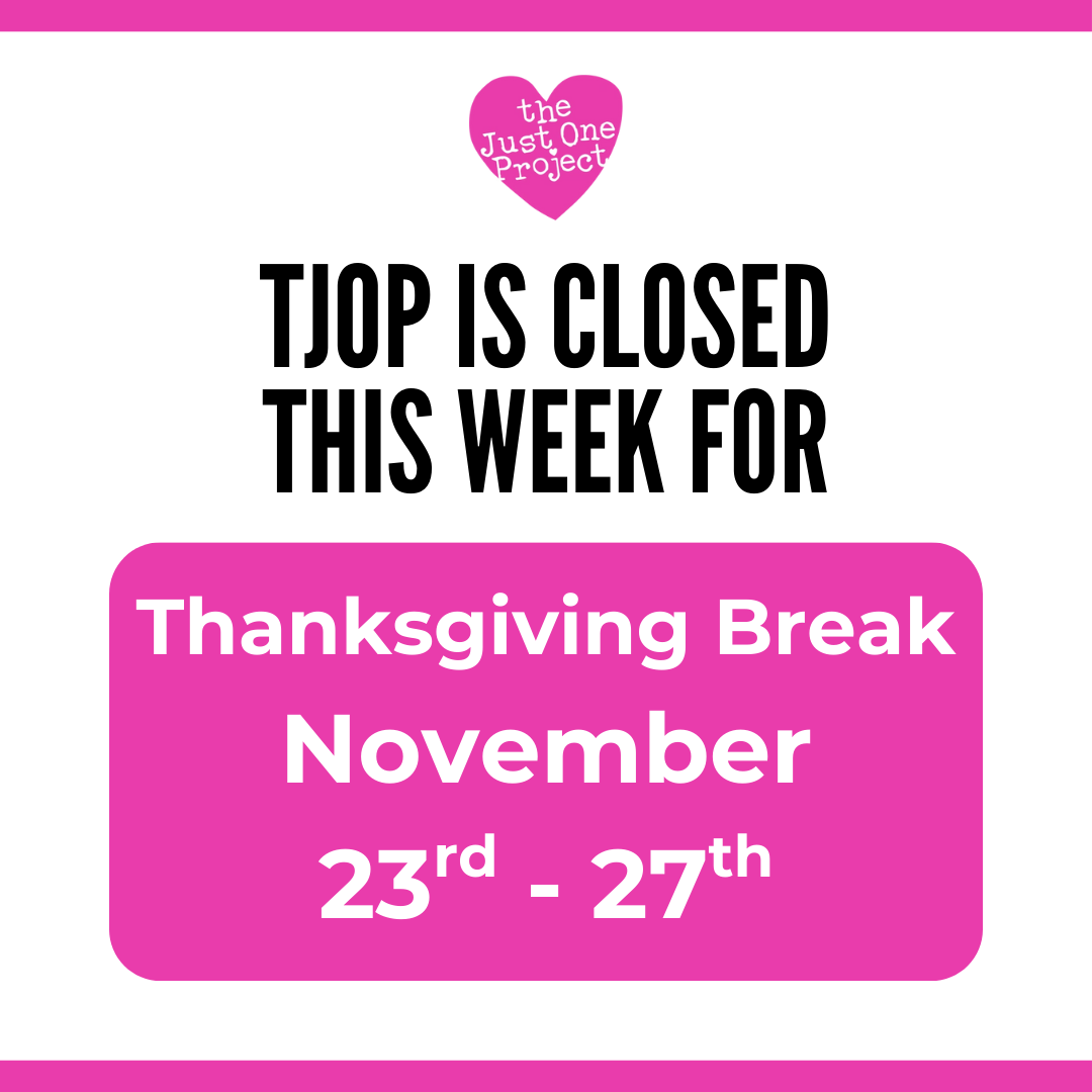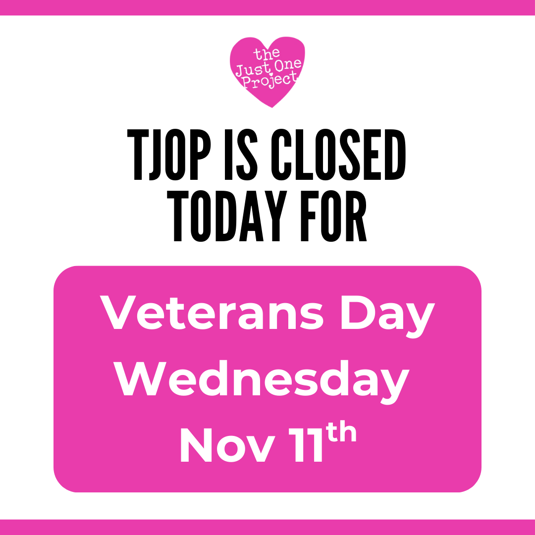 The Just One Project will be closed Wednesday, November 11 for Veterans Day. TJOP honors all who have served and thanks the veterans within our team and community.